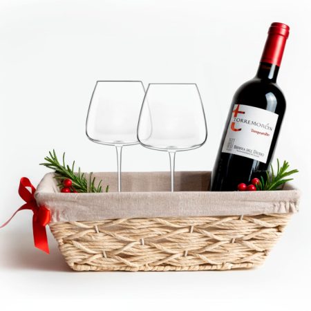 Canasta con Vino y Copas