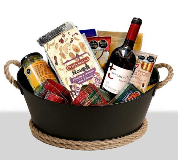 Un regalo elegante y versátil presentado en una charola negra con asas. Incluye una selección de productos para consentir y compartir: